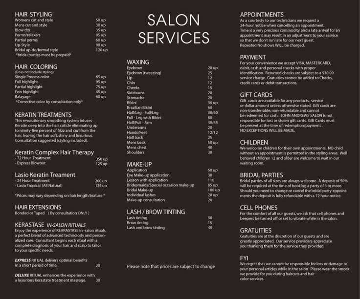 | Hair Color Service | $15 |
